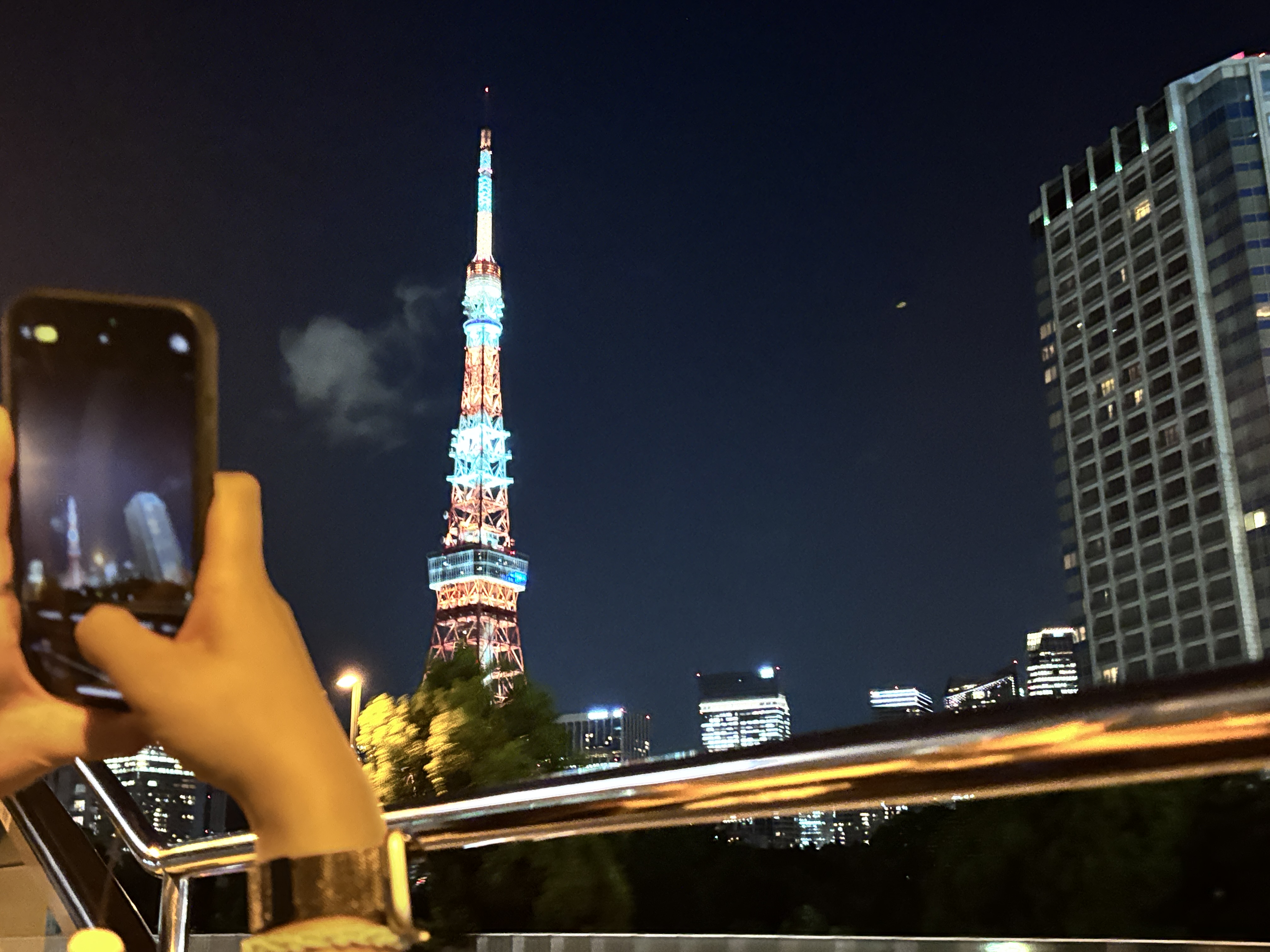 夜景にカメラを向けるツアー参加者(Tokyo Twinkle Night Tour)